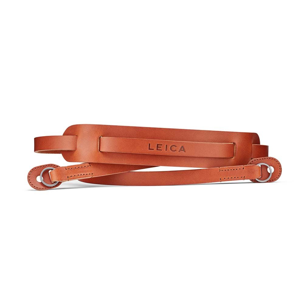 This leather shoulder strap stands out due to its fine craftsmanship. Both the strap and the sliding shoulder pad are expertly cut from a single piece of leather, with only the rings sewn on. The strap is crafted from high-quality vegetable-tanned cowhide, which naturally softens and becomes more supple with use, developing a distinctive patina over time. A subtly embossed Leica logo graces the centre of the strap. Available in black and cognac, this strap is compatible with all Leica M-Cameras.