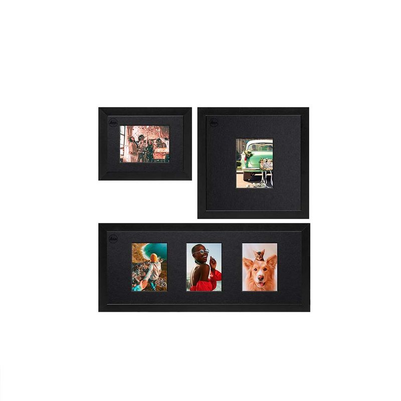 Frame unforgettable moments stylishly - with the picture frames for prints in Instax Mini format, you put memories in the spotlight. The set includes frames in three different sizes and is available in the colours black, white, or natural. The glass-free wooden frames are each equipped with passepartouts featuring a subtle Leica logo.