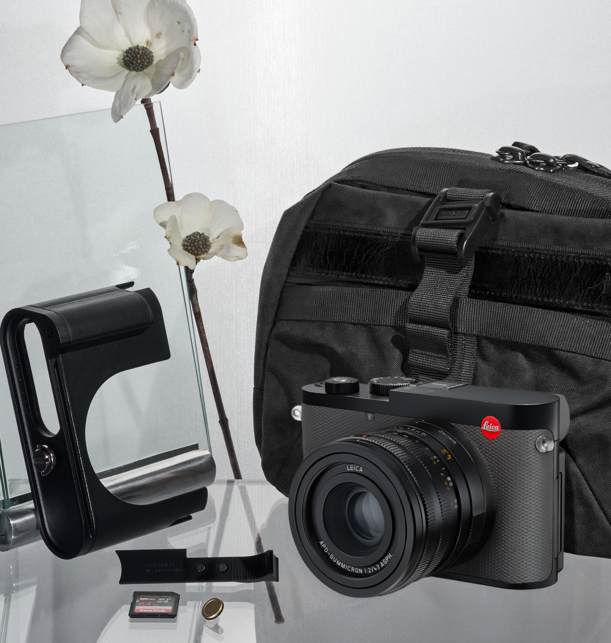The aluminum or brass thumb support can be slotted into the hot shoe of the Q3 for improved ergonomics. As well as ensuring a secure handling of the camera (especially during one-handed shooting and filming), the thumb support also enables longer exposure times.