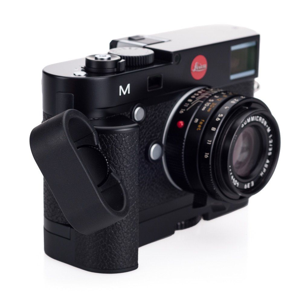 Steady handling of the camera As known from the Leica M (Typ 240) the handgrip allows to attach three different sizes of finger loops.