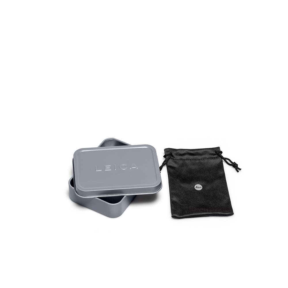 With the boxes made of grey metal, you can elegantly and durably preserve your Leica SOFORT pictures. The set includes a larger as well as a smaller tin, both embossed with a classic Leica logo.