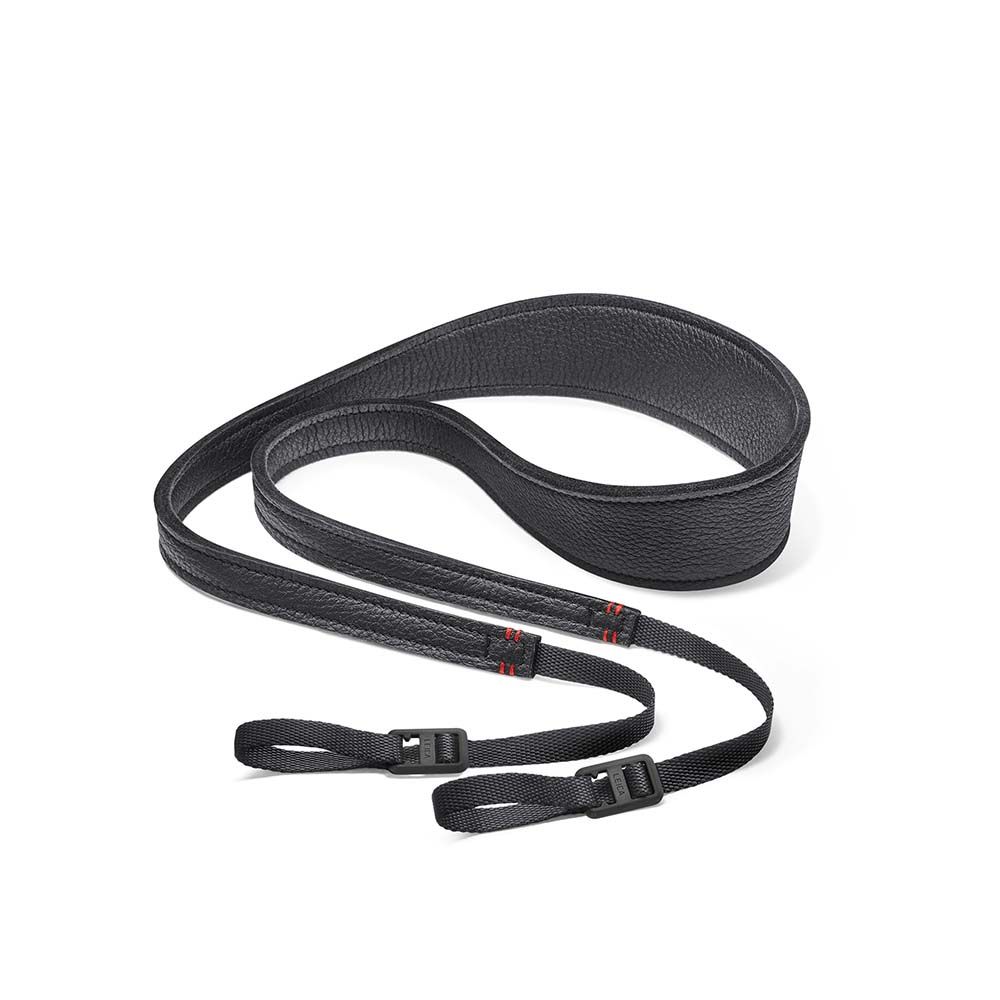 This carrying strap for the Leica S- and SL-System combines durable elk leather with textile for a perfect blend of functionality and style. The resilient elk leather guarantees comfortable wear, while the strap ends feature a new attachment, allowing for quick and easy mounting and dismounting. Moreover, the new attachment is easily adjustable in length and can be removed residue-free, leaving no components behind on the camera.