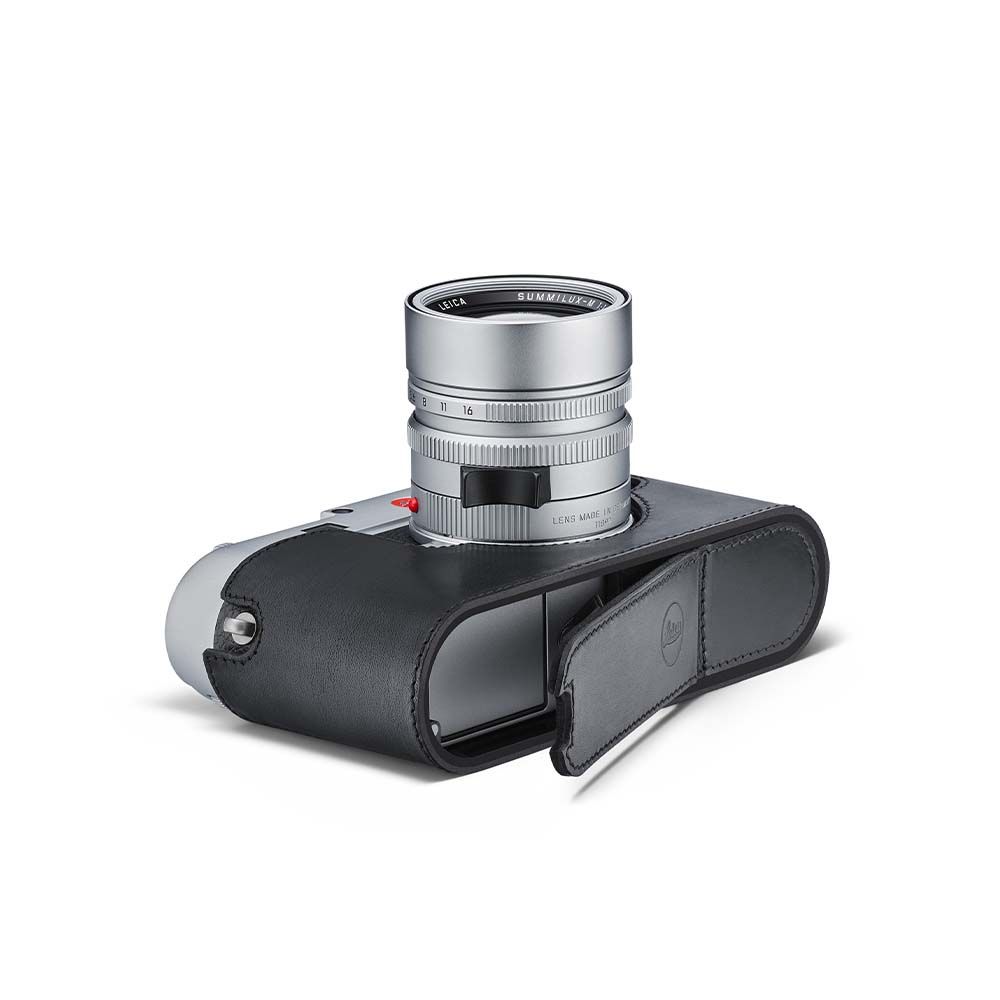The half-case made of supple, vegetable-tanned Italian leather provides optimal protection for the M11. Available in three attractive colour options (Black, Cognac, and Olive Green). No tools are required to attach the protector, and all operating elements as well as the USB port remain fully accessible. Camera accessories such as a shoulder strap, wrist strap or thumb rest can also be used without restrictions. A flap on the protector’s bottom offers instant access to the battery and memory card, whereas an additional compartment for an additional SD-Card ensures that your M11 is always ready to shoot.